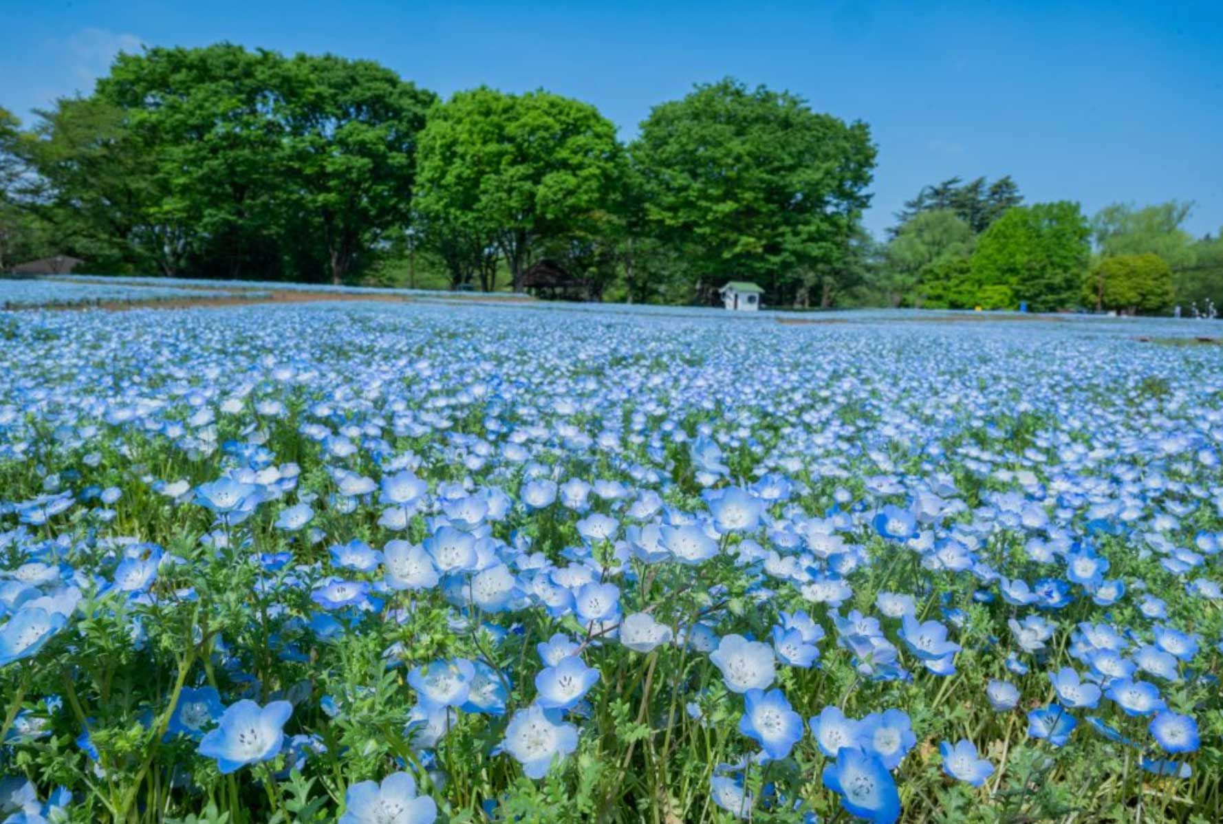 第3位は、イチョウ並木で有名な広大な敷地を誇る昭和記念公園です。ここでは「みんなの原っぱ」の西花畑に広がる約20万本のネモフィラが主役。規模こそ上位2施設には及びませんが、その分「写真の撮りやすさ」に定評があります。